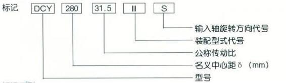 名義中心距為280mm,公稱傳動比為31.5,裝配型式第Ⅲ種,輸入軸順時針方向旋轉的三種傳動減速器標記為DCY280-31.5-ⅢS。