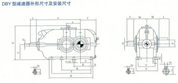 DBY型為二級傳動,DCY型為三級傳動。DBY型和DCY型傳動為格里森弧齒錐齒輪,二、三級傳動為漸開線圓柱斜齒輪。